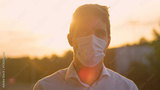 PORTRAIT Young man smiles under his protective facemask during covid-19 pandemic