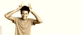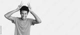 Young african american man wearing casual clothes posing funny and crazy with fingers on head as bunny ears, smiling cheerful