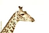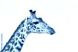 Close up portrait of male giraffe face isolated on white background in Masai Mara in Kenya