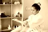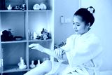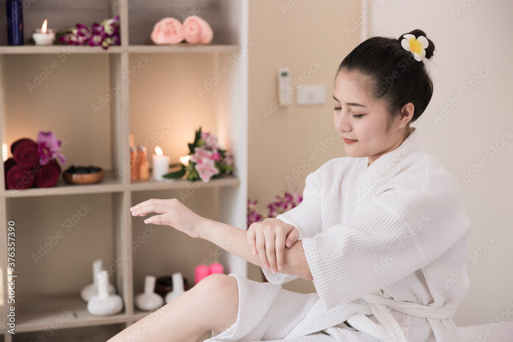 Young woman skincare with essential oil. Cosmetic beauty skin care and relaxing oil massage concept.