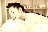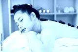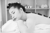 Young Asian woman getting spa massage with hot stone massage at beauty spa salon. Relaxing massage for health
