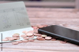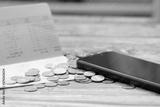 Close up of coins on black background, Coins stacked background and Advertising coins of finance and banking