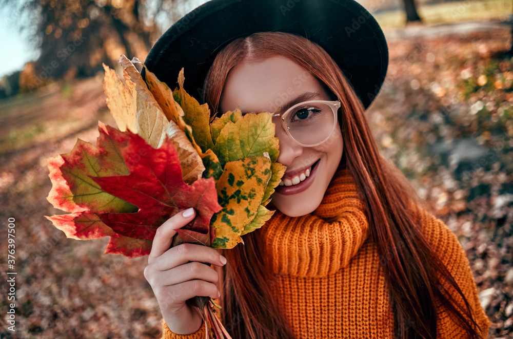 Woman in park in autumn