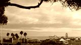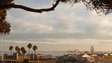Classic ferris wheel, amusement park on pier in Santa Monica pacific ocean beach resort. Summertime California aesthetic, iconic view, symbol of Los Angeles, CA USA. Sunset golden sky and attractions