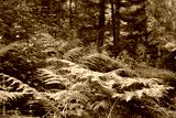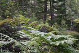 Mountain landscape. Large stones overgrown with green moss in the forest. Siberian taiga in summer. Stolby national park in Krasnoyarsk. The nature of Siberia. Dark dense forest background.