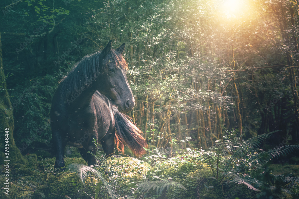 Black horse in the forest