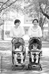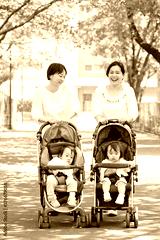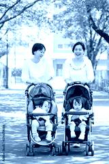 散歩する親子