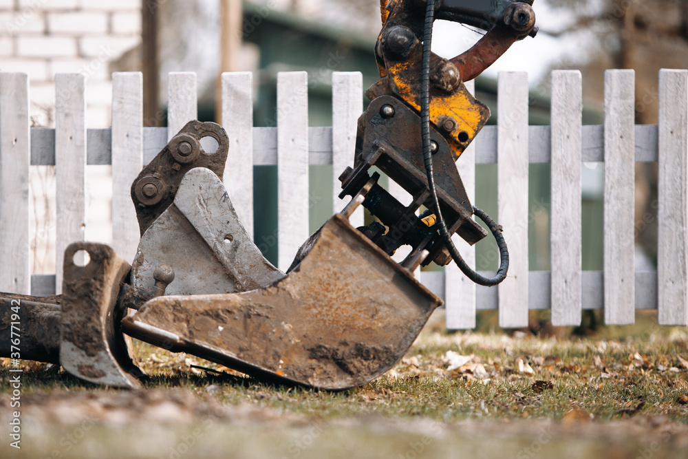 Dirty excavator bucket close up