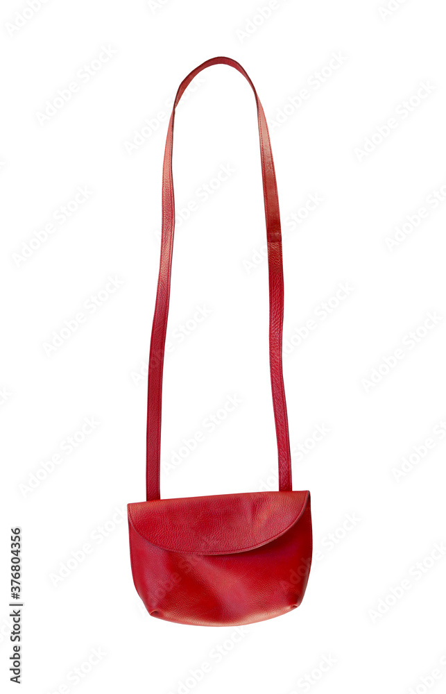 Red leather bag isolated on white.