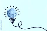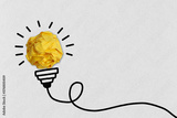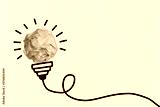 Spherical wrinkled paper and hand drawn black line light bulb idea.