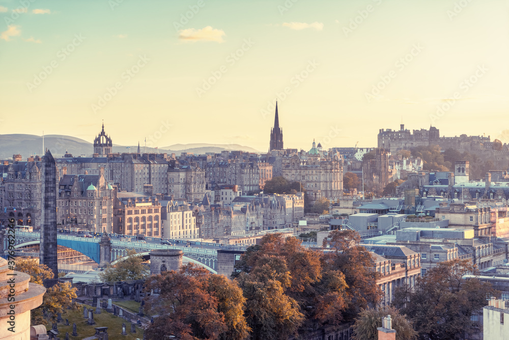 Edinburgh city skyline from Calton Hill., United Kingdom