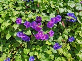 Powojnik Convolvulus Grandpa Ott's Ipomea purpurea fioletowa roślina pnąca, kwiaty w kształcie kielichów lub dzwonków.