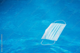 Mask floating on pool water during Covid pandemic.