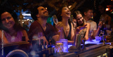 Group of young people having fun at a party at the bar, laughing and drinking alcohol