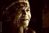 Portrait of Asian elderly man sitting alone in the countryside, wrinkled skin, gray hair, 70 years old, close-up view Thailand.