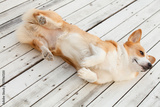 寝転ぶウェルシュ・コーギー・ペンブロークウェルシュ・コーギー