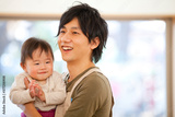 保育士に抱っこされる保育園児