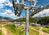 Cable car pillar and Ski lift chairs in resort Jasna in Low Tatras mountains, Slovakia