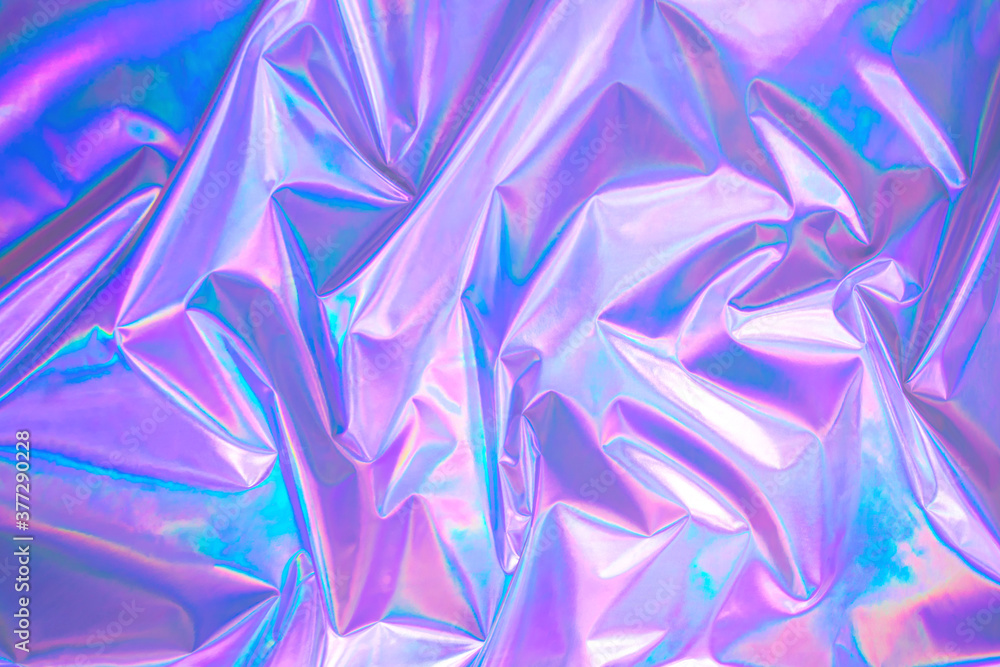 Blurred abstract Modern pastel colored holographic background in 80s style. Crumpled iridescent foil real texture. Synthwave. Vaporwave style. Retrowave, retro futurism, webpunk