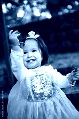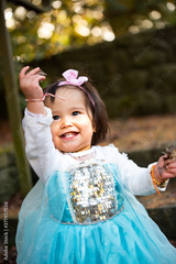 girl in the autumn park on blue dress