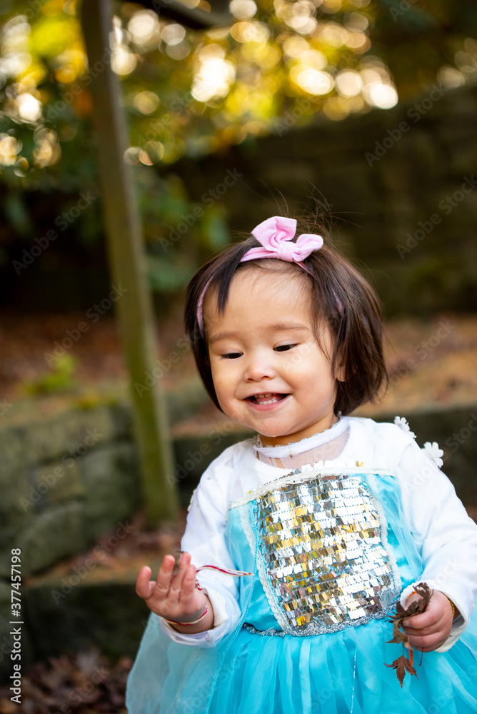 girl in the autumn park on blue dress