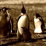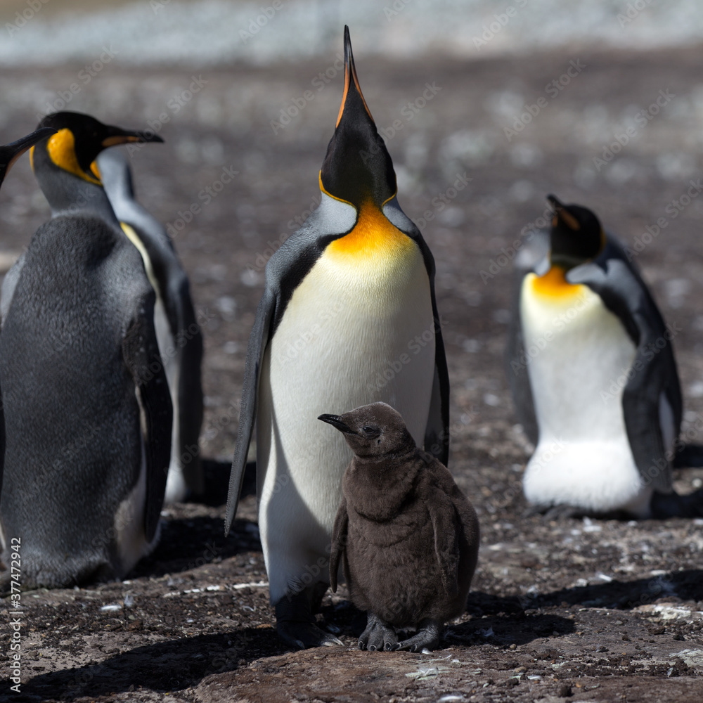 King Penguin (Aptenodytes patagonicus) feeding a chick, Saunders Island. Square Composition.