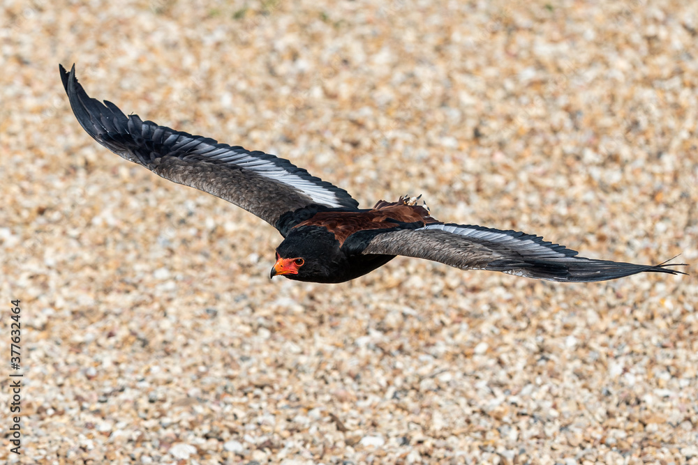 Bateleur Eagle flying in the meadow
