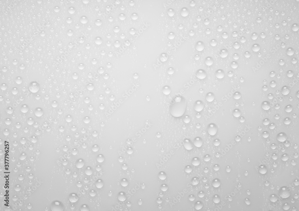 Water droplets on a gray background. Water droplets on a background of water drops.