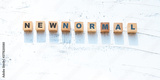 "NEW NORMAL" text on wooden block, A new world after the outbreak of COVID-19