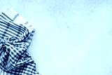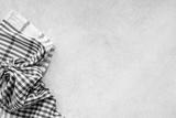 Grey concrete background with kitchen textile. Food background with copy space for text or design