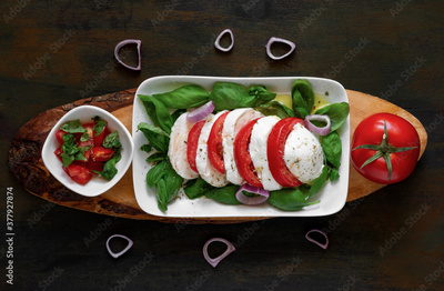 caprese salad with buffalo mozzarella, tomato and basil with olive oil