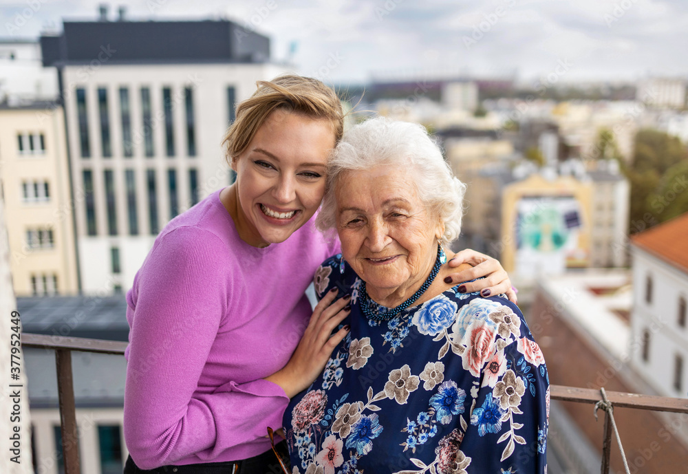 Young woman spending time with her elderly grandmother at home
