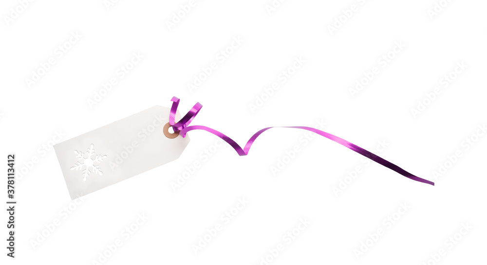 Gift tags and label template with pink ribbon attached to add to presents, Christmas or birthday gifts isolated against a white background.