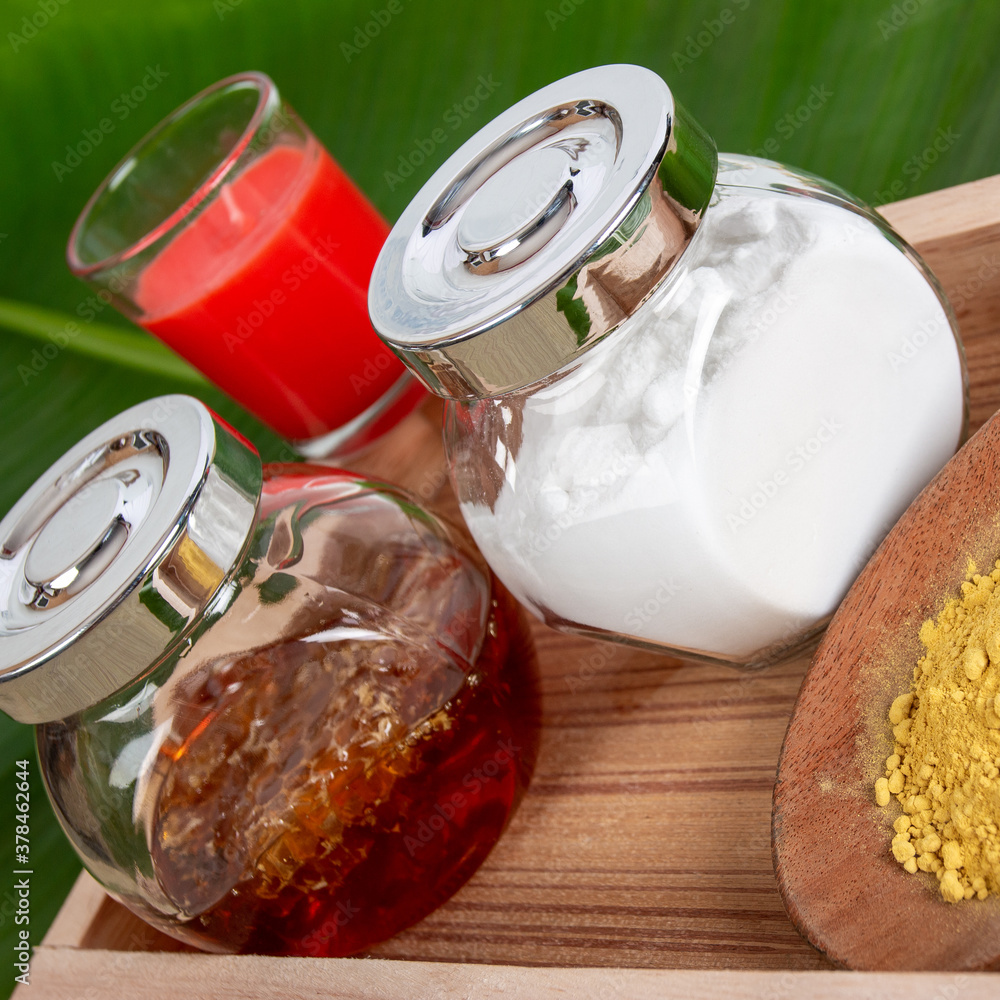 Aromatherapy and Natural Spa theme on natural green leaf background.