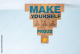 Inspiration quotes " MAKE YOURSELF PROUD" on wooden block