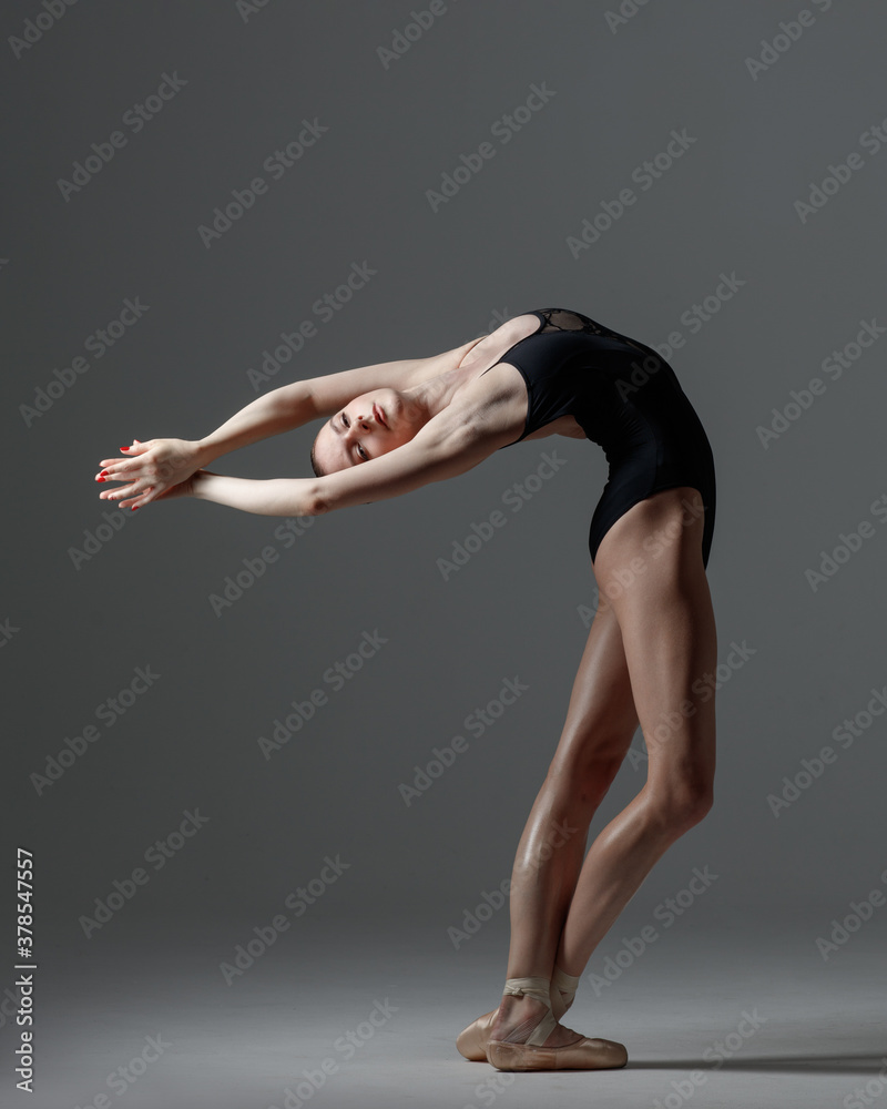 Young beautiful ballet dancer is posing in studio