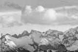 Sunset with dramatic sky and snowy mountain peaks illuminated by sunlight, Tatra Mountains in winter time. Mountain range in Bialka Tatrzanska, Poland