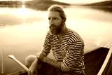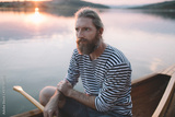 Portrait of man in sailor shirt posing in a boat