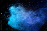 Blue sky color powder explosion on black background.