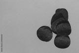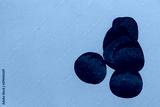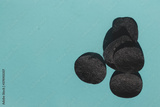 Potato chips in black on a blue background. Creative idea, design. Snacks and beer appetizers. Copy space.