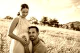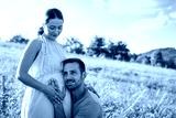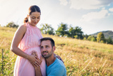 Proud husband with her pregnant wife