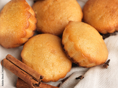 Christmas muffins covered powdered sugar, (background for congratulations)