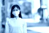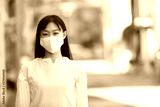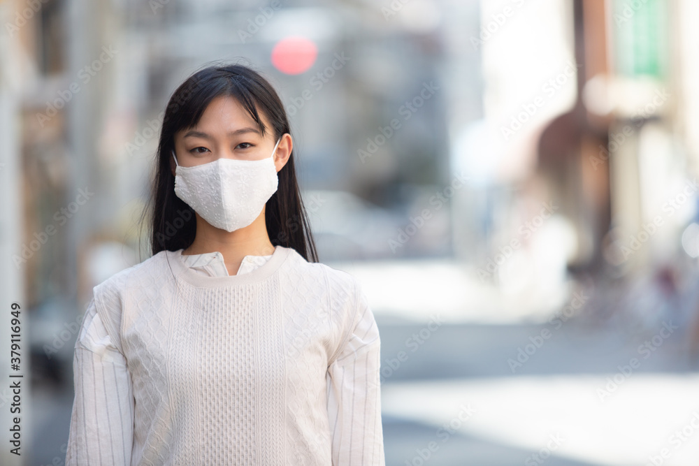 マスク姿の若い女性。 COVID-19 パンデミックコロナウイルス。病気の拡大を防ぐマスクを着けている若い女性のポートレイト。