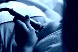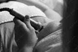 View from above. The hands of a beautician doctor who makes skin care for a girl with a cosmetic apparatus