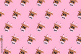 Breakfast for a child, toast with a funny head of a cow or bull. Pattern from New Year's festive snack, symbol of the year.