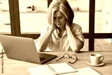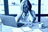 Tired stressed old mature business woman suffering from neckpain working from home office sitting at table. Overworked senior middle aged lady massaging neck feeling hurt pain from incorrect posture.