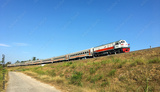 Yogyakarta, Indonesia - September 18, 2020: Indonesian trains cross the countryside in Kulon Progo