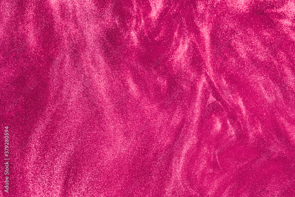 de-focused. Abstract elegant, detailed pink glitter particles flow underwater. Holiday magic shimmering luxury background. Festive sparkles and lights.