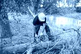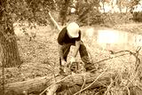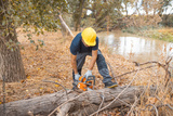 lumberjack with chainsaw in forest