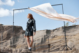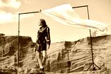Beautiful woman with long red hair posing in nature. Beautiful natural makeup